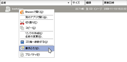 | ISOイメージから DVD-R/CD-R を作成する場合