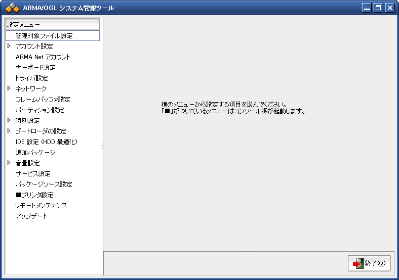 管理ツールを起動した後はインストーラと同様の操作で各種ツールを使うことができます。なおこの後の章では、各分野の設定についてシステム管理の背景となる知識について詳説します。