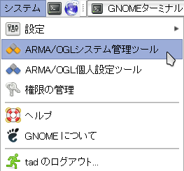 ARMA/OGL管理ツール(以下管理ツール)は、インストーラで行った各種設定や各種ハードウェア・ソフトウェア設定などを統合して行えるツールです。可能な限り広い場面で設定が可能なように管理ツールには複数の起動法があります。