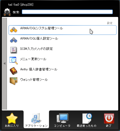 KDEデスクトップから開始する場合は、「K」-「アプリケーション」-「設定」から下記の項目を選択してください。