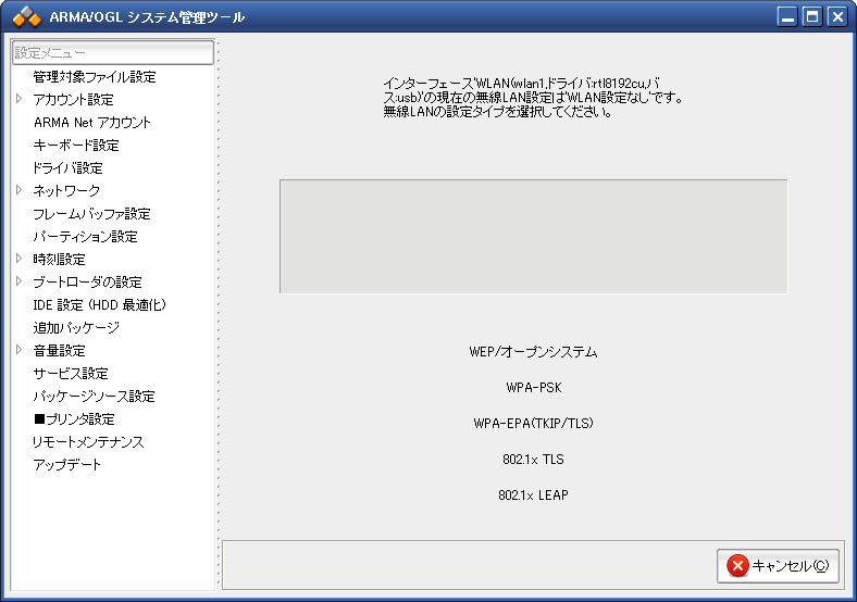 個別の無線 LAN デバイスにつきましては、別途ファームウェアパッケージのインストールや特定のカーネルのインストールが必要になる場合があります。不明な場合は ARMA Net サポートをご利用ください。
