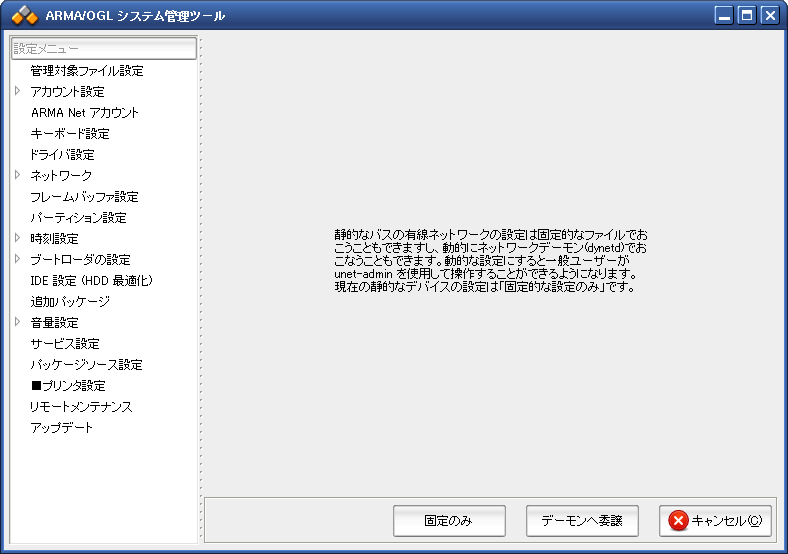 ツールバーの「システム」-「ARMA/OGLシステム管理ツール」を選択