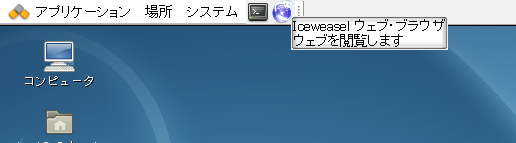Iceweasel を起動するには、X Window System 上で以下のコマンドを使うか、あるいはメニューバーの「Iceweasel」アイコンをクリックします。