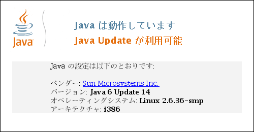 Java プラグインの動作を確認する場合は http://www.java.com/ja/download/help/testvm.xml をブラウザに表示させてください。正常動作している場合は下記のような画面が表示されます。